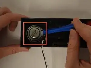 Снимите скобу, удерживающую динамик на месте.