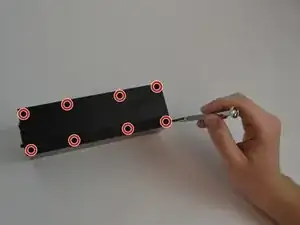 Переверните устройство вверх дном и удалите все восемь винтов с крестовой головкой Phillips (длина — 3/8", диаметр головки — 1/8") с помощью стандартной крестовой отвертки #1.