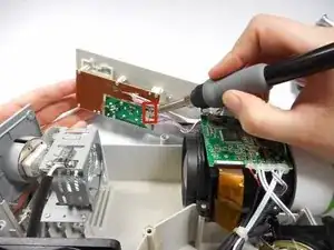 При отпаивании металлические соединения сильно нагреваются. Никогда не касайтесь паяльника рукой. Также убедитесь, что проектор полностью выключен и не подключён к питанию.