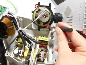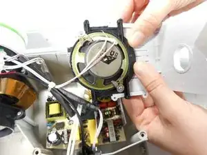 Выньте боковую панель и динамик из корпуса проектора.