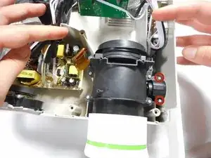 Аккуратно разомкните верхнюю и нижнюю части корпуса проектора руками.