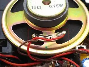 Приложите нагретый наконечник паяльника к месту пайки на выводах динамика.