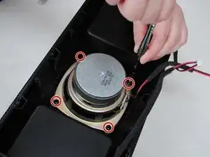 Отверткой Phillips №1 отвинтите четыре винта с полукруглой головкой длиной 1,2 см вокруг динамика.