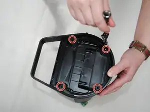 Отверткой Phillips №1 отвинтите четыре винта длиной 1,1 см, крепящие металлическое кольцо к нижней части устройства.