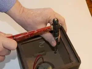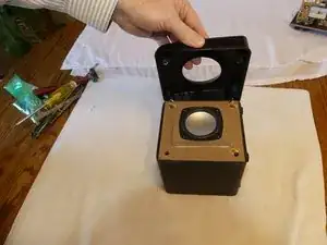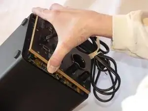 Используйте отвертку Phillips #4, чтобы снять четыре винта длиной 9.5 мм, которые крепят сабвуфер к коробке вуфера.