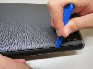 Проведите пластиковым инструментом по внешним краям колонки. Подденьте по швам, пока не сможете снять боковую панель колонки, оголив батарею.
