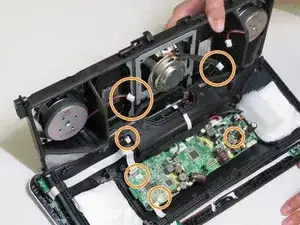 В этом руководстве показано, как выкрутить винты и снять панель, закрывающую динамик. Также описано, как заменить динамики в устройстве.