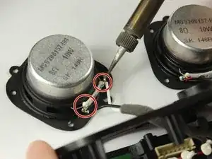 Расплавьте припой на соединении с динамиком и потяните провод, чтобы отсоединить.