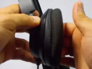 Снимите амбушюры, отделив тканевую часть от пластикового элемента наушников.