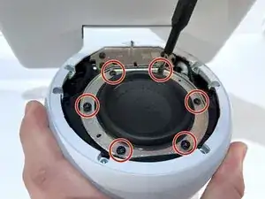 Используйте отвертку Phillips #2, чтобы удалить шесть винтов длиной 13 мм по периметру динамика.