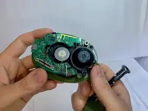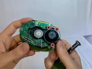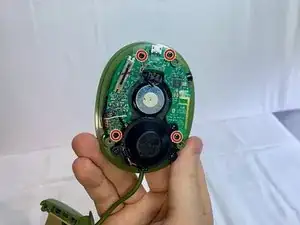 Снимите четыре винта Phillips №1 длиной 4 мм, которые крепят материнскую плату к пластиковому корпусу.