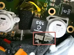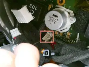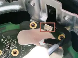 Этот разъём, скорее всего, уже был отключен при снятии материнской платы, но если он всё ещё прикреплён к стяжке, просто перережьте её, чтобы извлечь динамик.