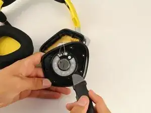 Используйте нож в качестве клина, чтобы снять динамик и приклеить новый динамик.
