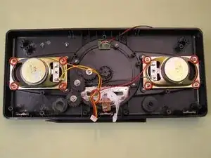 Наконец-то вы дошли до цели. Снимите восемь винтов 6 мм, удерживающих динамики.