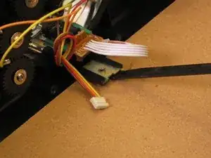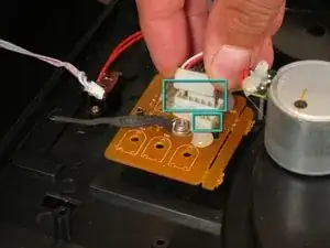 Отсоедините два пластиковых разъёма, подключённых к плате на вертушке.