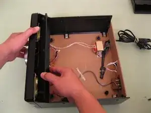Снимите три винта 6 мм на дне ближе к передней части радиоприёмника.