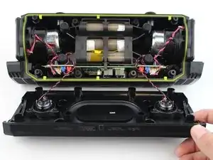 Отделяйте обе части медленно и аккуратно, чтобы не повредить кабели динамиков.