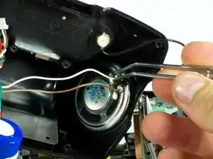 Используйте отвертку Philips #00, чтобы удалить два винта с батарейного кронштейна.