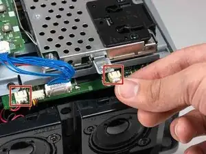 Сожмите края двух разъёмов и осторожно отключите оба провода от материнской платы.