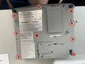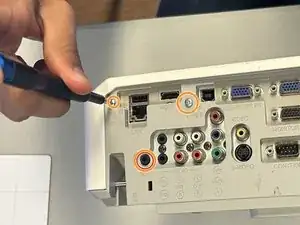 Сориентируйте проектор нижней стороной вверх и снимите все девять винтов по 11,5 мм с помощью отвертки Phillips #00.