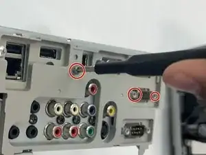 В области выхода на задней стороне устройства снимите все три винта по 11,5 мм с помощью отвертки Phillips #00.