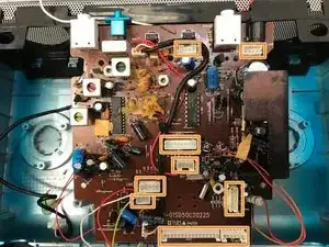 Снимите семь винтов, удерживающих плату:
