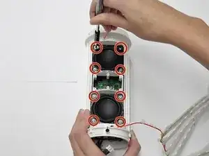 Отверткой Phillips #1 снимите восемь винтов 6,4 мм, удерживающих динамики.