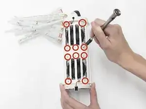 Отверткой Phillips #1 снимите десять винтов 9,5 мм, удерживающих каркас.