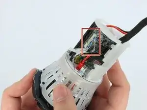 Отсоедините индикатор уровня батареи, потянув провод от светодиодов.
