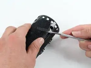 Используя пластиковый инструмент для открытия, подденьте чехол снизу динамика.