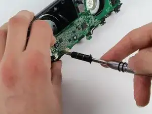 Используя отвертку с головкой Phillips #2, открутите винт длиной 9.9 мм с большей платы, окружающей динамик.