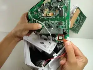 Вытащите белый разъём, идущий от динамиков к логической плате.