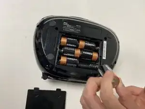 Удалите батареи, находящиеся под радиоприемником, сдвинув открывающуюся панель.
