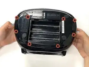 Всего будет шесть (6) винтов в нижней части динамика, один (1) винт в CD-приводе и два (2) под панелью с батареями. Всего девять (9) винтов.