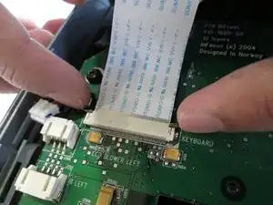 Отключите провод динамика от платы, сжимая по бокам и тянув.