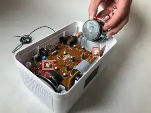 Снимите верхнюю часть устройства и внимательно посмотрите на материнскую плату. Вы увидите два динамика, по одному с каждой стороны устройства.