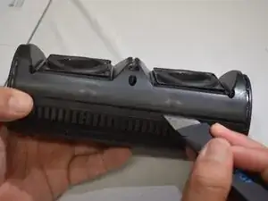 Подденьте одну пластиковую лопатку iFixit и приложите внешнее давление, чтобы отщёлкнуть одну сторону решётки.