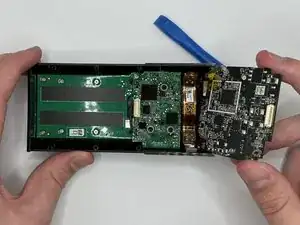 Затем с помощью пластикового инструмента для поддевания извлеките последнюю дочернюю плату с прикреплённым микрофоном.