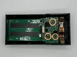 Снимите серебристый винт Phillips #00 длиной 5 мм и два винта Phillips #00 длиной 10 мм с следующей печатной платы.