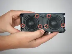 Отверните шесть винтов Philips #2 длиной 2,5 мм на передней части устройства вокруг динамиков, используя отвертку PH2 с крестообразным шлицем.