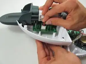 Удалите четыре винта с крестообразной головкой #2 длиной 12 мм, расположенные вдоль внешнего края белого корпуса.