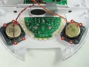 Удалите восемь винтов с крестообразной головкой #1 длиной 11 мм, которые соединяют динамики с белым внешним корпусом.