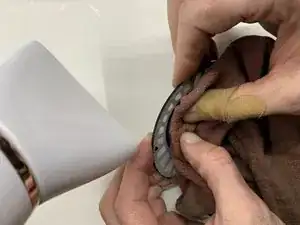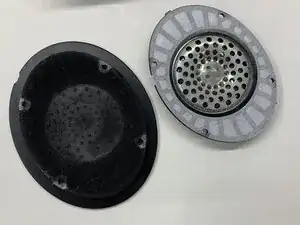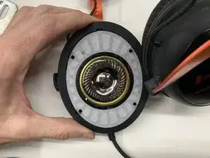 Сначала мы снимем амбушюр и пластиковую панель, к которой прикреплён динамик. Затем мы выпаяем провода с платы динамика. После этого нужно будет извлечь динамик из пластиковой рамки, к которой он прикреплён. Работая с новым динамиком, мы закрепим его в той же пластиковой рамке с помощью эпоксидного клея. После застывания клея мы припаяем провода к плате нового динамика. Затем вставим пластиковую рамку обратно в чашку наушников и зафиксируем её оставшейся пластиковой панелью. Наконец, мы снова закрепим амбушюр и приведём наушники в рабочее состояние.