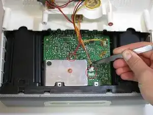 Отогните печатную плату, чтобы получить доступ к пластиковому элементу.