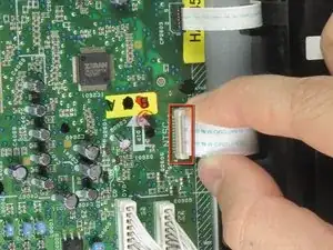 Снимите первый из трёх ленточных кабелей с левой стороны дисковода, аккуратно потянув вертикально.