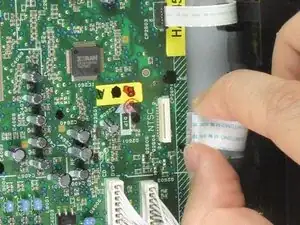 Снимите третий из трёх ленточных кабелей с левой стороны дисковода, аккуратно потянув вертикально.