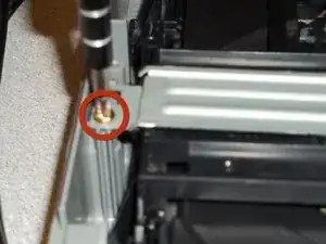 Используйте отвертку Phillips №2, чтобы снять два винта в основании дискового привода.