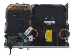 Удалите два винта размером 7.5 мм с обеих сторон дискового лотка с помощью отвертки с крестообразным наконечником #2.