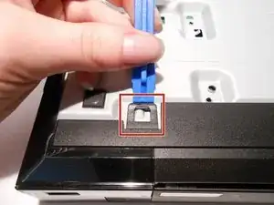 Используя инструмент для открытия, поднимите язычки, расположенные внизу пластикового переднего покрытия.