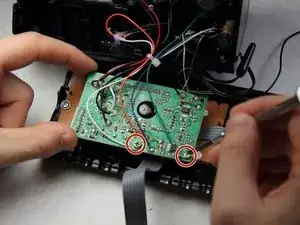Удалите два винта Phillips 6 мм, удерживающие мини-плату для фронтальных кнопок.